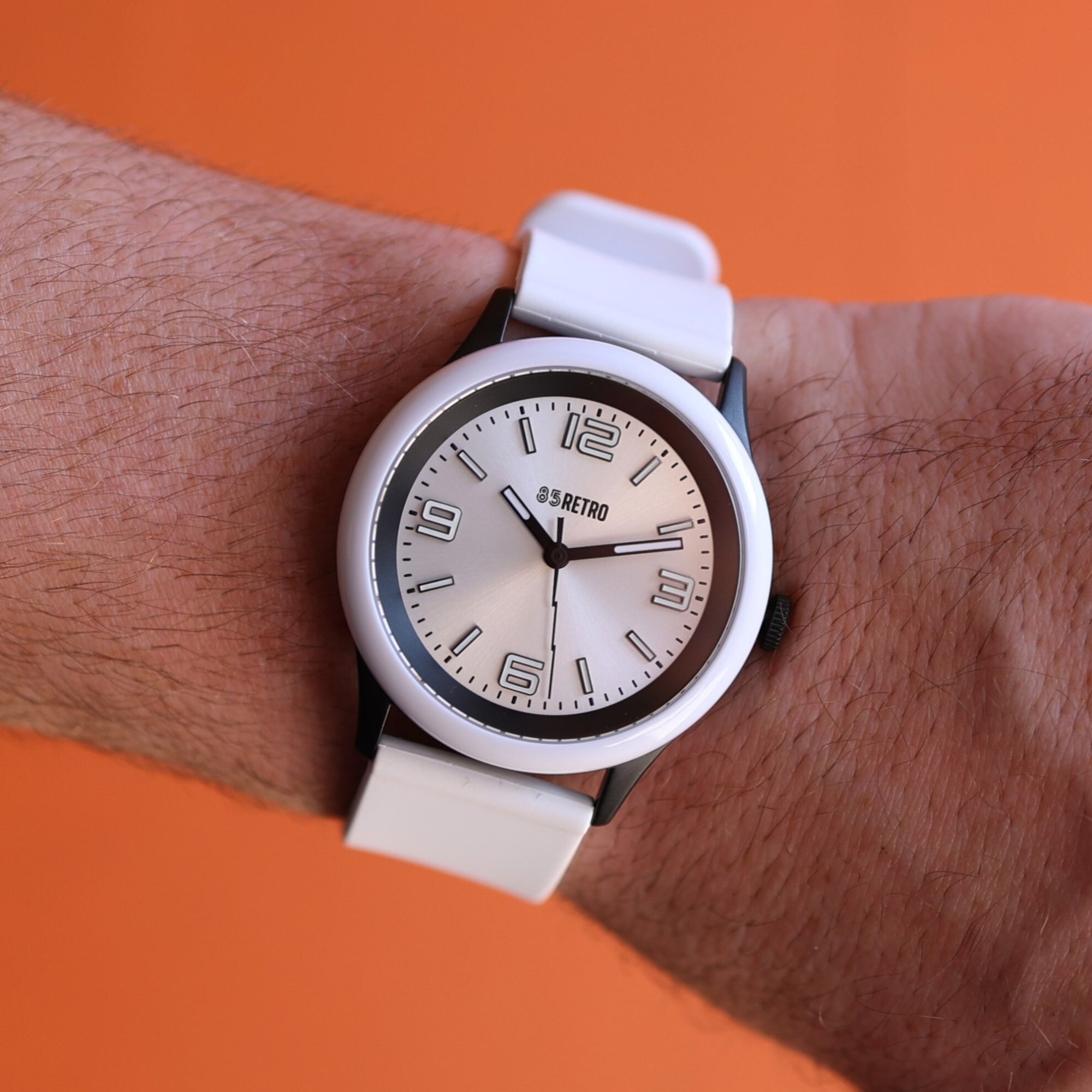 The Model 1 is designed for those who love bold, retro-inspired designs and want a watch that elevates their sneakers and casual style. It captures the spirit of retro sneakers and reimagines it for your wrist.